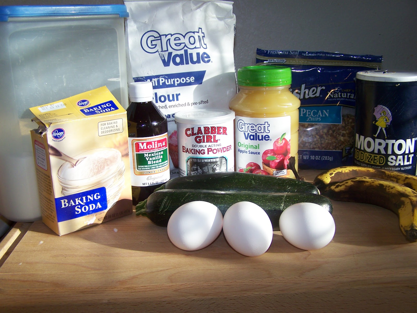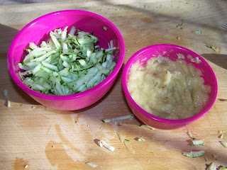 Prep your A to Z ingredients.  I had some brown bananas staring me down every time I walkd in the kitchen so I mashed those up.  I got a little less than a cup so I did just over a cup of grated zucchini to equal my 2 cups.