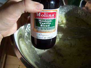 Then add your vanilla.  I prefer Mexican vanilla.  Maybe it's because my husband is mexican?  Or maybe it's because it tastes more creamy and less "alcoholy" than other vanillas I've tried.  Who knows.