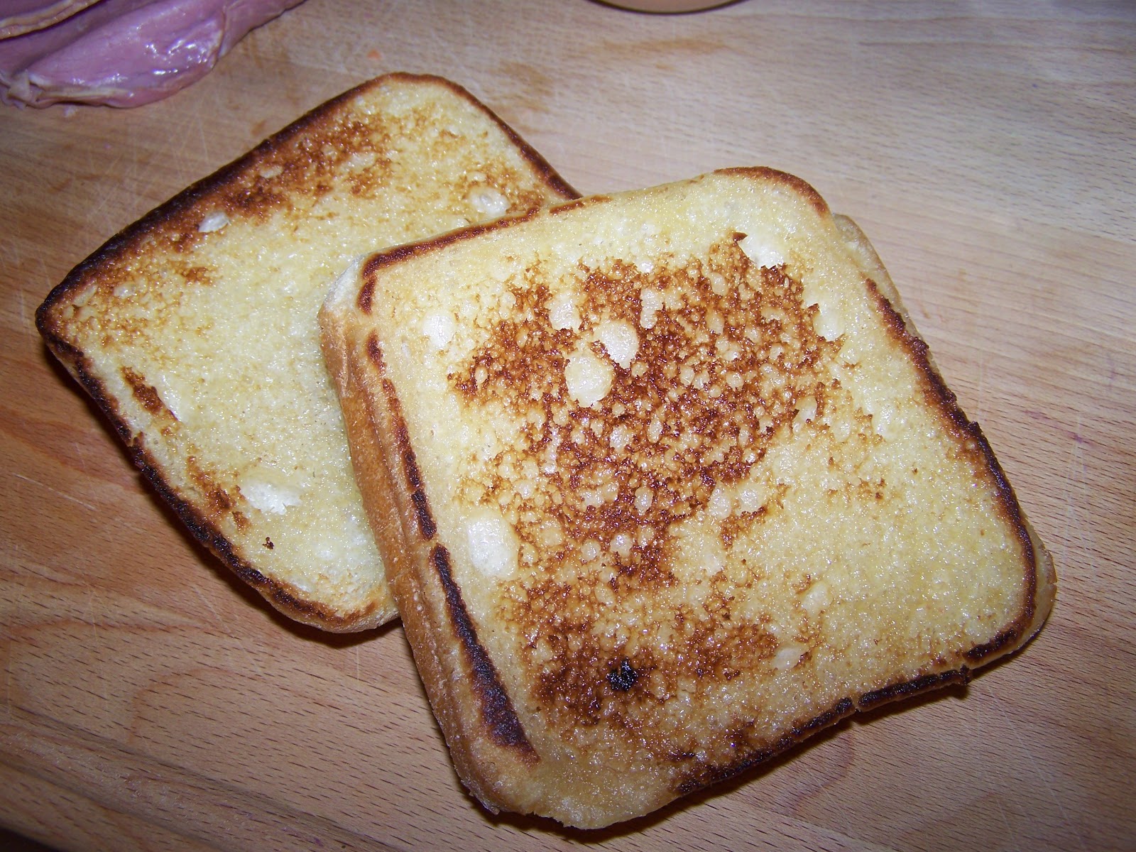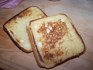 Next, toast your buns because everything is better covered in butter and pan fried to golden brown. I usually use an onion or kaiser roll, but I had ciabatta on hand and I actually think I liked it better.