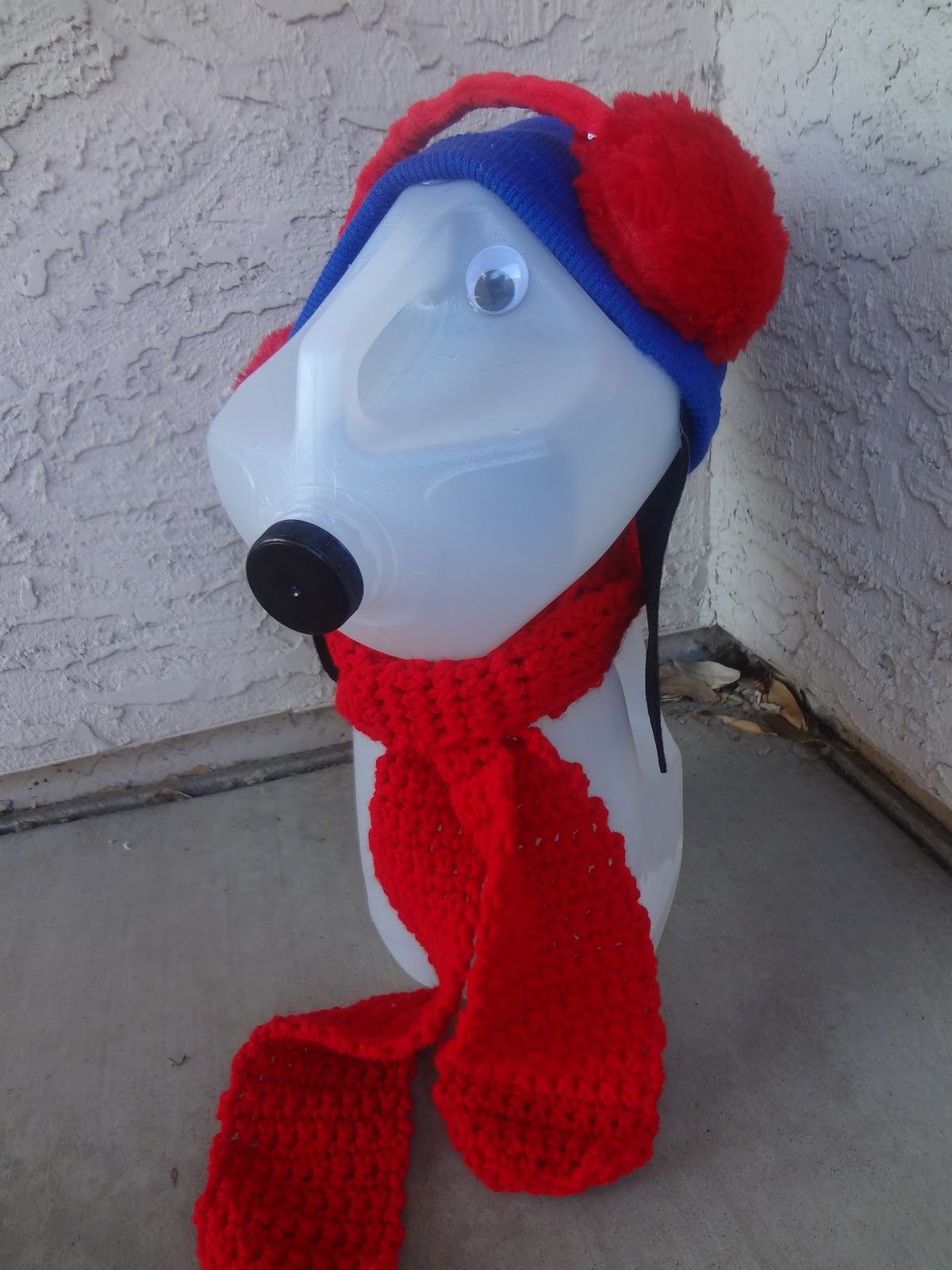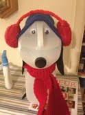 Isn't he cute? I think I was just so in love with him I didn't even notice his ear muffs were all caddywompus. So I apologize for his disheveled appearance. Sorry Snoopy