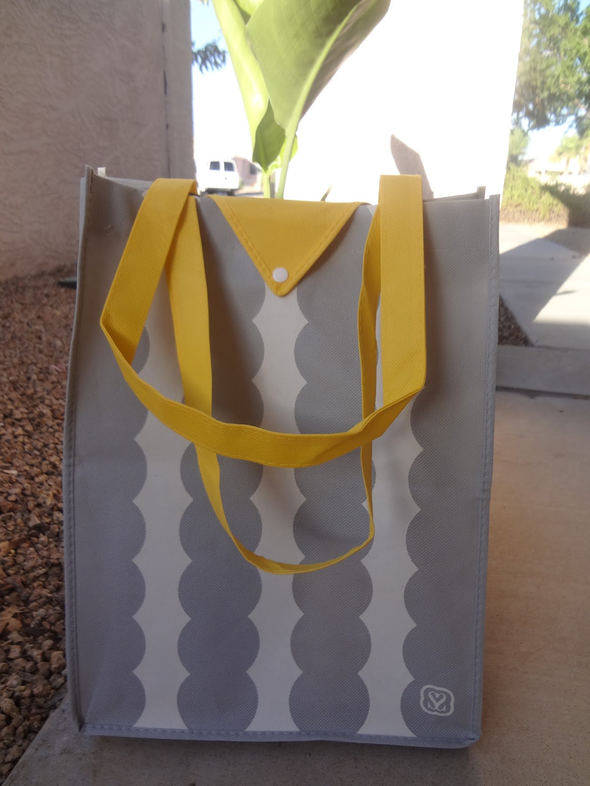 I put it all in this cute bag. I really scored on the yellow and grey stuff!