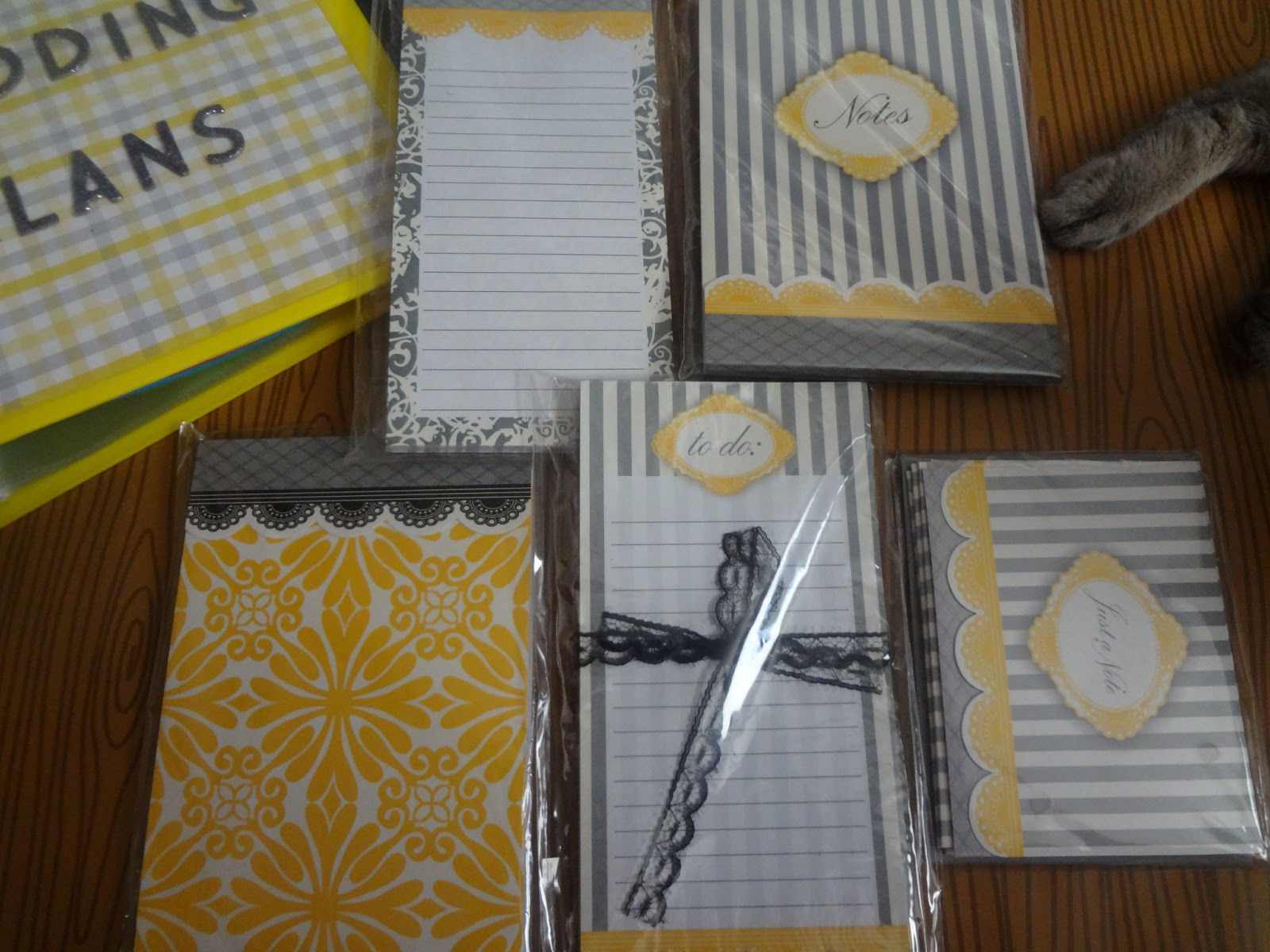 I got super lucky and found a bunch of grey and yellow notecards and notepads and Michaels. Perfect for jotting down all your to do lists and notes