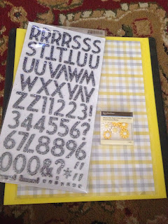 I bought a yellow binder, some scrapbook paper, some cool letters, and some embellishments